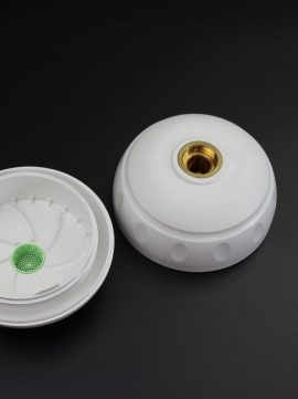 Gehäuse für ein Legionellenfilter. Werkzeug mit Messing Einlegeteil und Gewindeentspindelung für das Innengewinde und Außgengewinde des Gegenstücks.